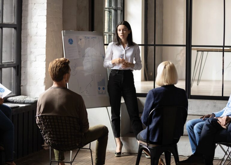 The scope of the training program includes preparing and providing all necessary materials, including printed media and tools used in project management. Practical exercises take up about 60% of the training time, giving participants a chance to get hands-on experience resolving problems and issues that may arise in their work. Practical tasks are adapted to the client’s industry specifics.